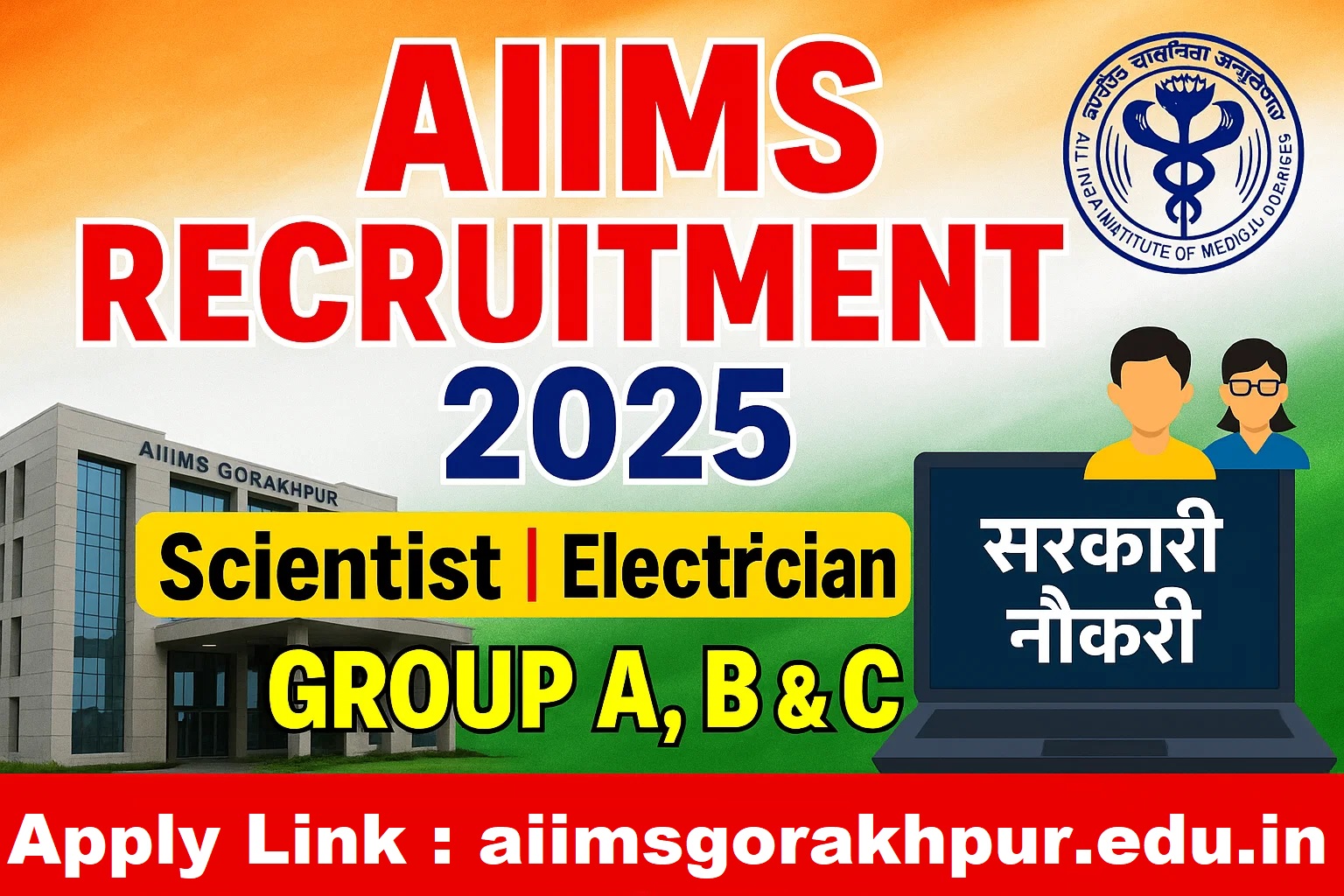 AIIMS Gorakhpur Non-Faculty Bharti 2025 : अखिल भारतीय आयुर्विज्ञान संस्थान (एम्स), गोरखपुर ने ग्रुप ए, बी और सी के नॉन-फैकल्टी के 69 पदों के लिए